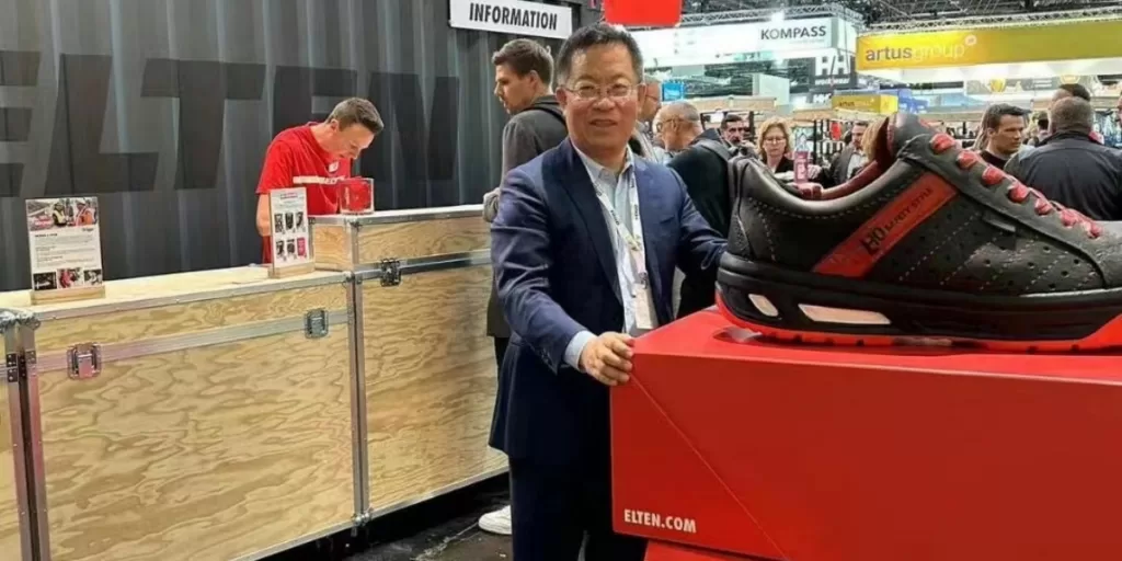 Our booth showcased our full range of safety footwear tailored for various industries. However, one particular shoe model stood out and garnered significant interest – our latest eco-friendly shoe prototype. Crafted entirely from renewable and recycled materials, this innovative shoe represents our commitment to sustainability and environmental stewardship.